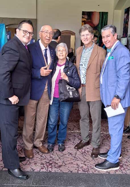El Gobernador Rotario Jorge Omar Moreno Alatriste y su esposa saludan a un matrimonio amigo a su derecha y al matrimonio integrado por el Lic. Mauro Jiménez Lazcano, Presidente del Club Rotario Plateros Centro Histórico y su esposa Margarita Romero Luelmo (5º y 6º de i a d)