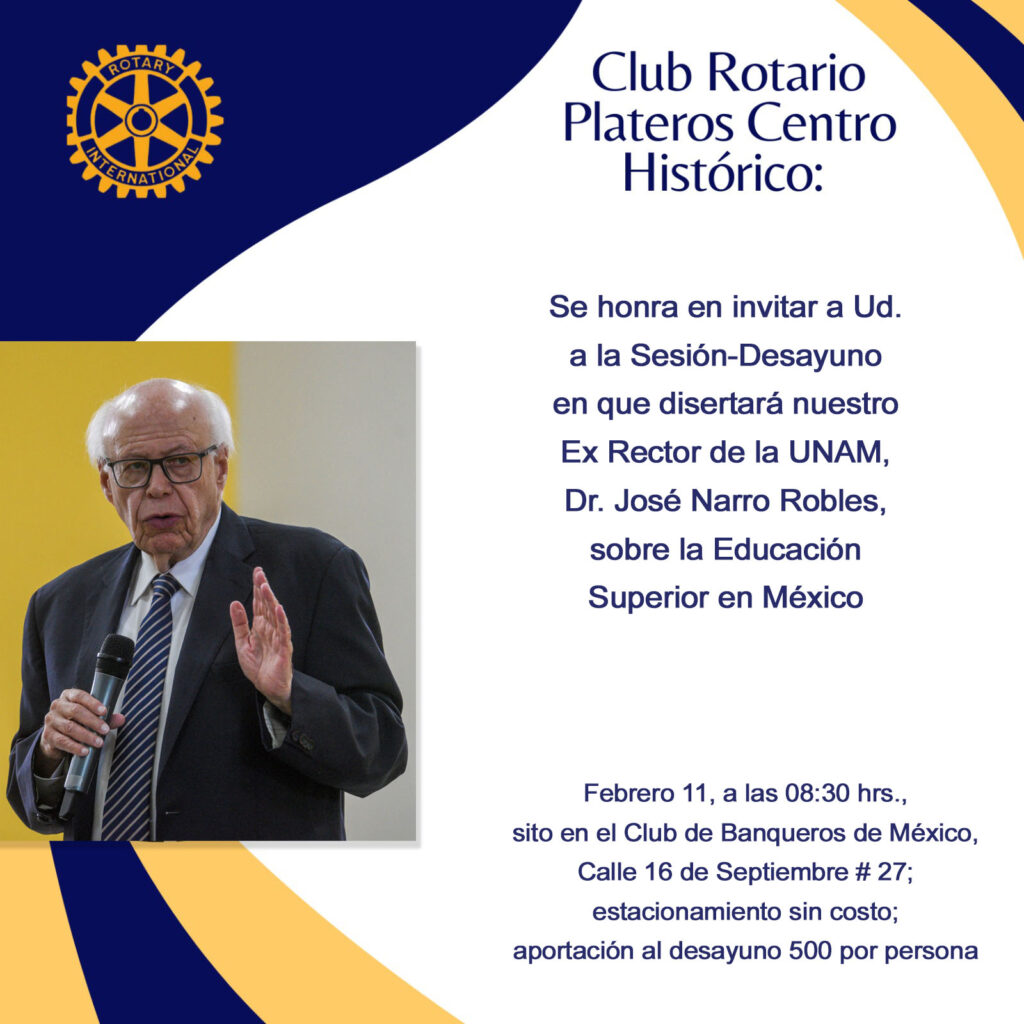 Home/Política/Sesión-Desayuno en que disertará nuestro Ex Rector de la UNAM, Dr José Narro Robles Política Sesión-Desayuno en que disertará nuestro Ex Rector de la UNAM, Dr José Narro Robles El Club Rotario Plateros Centro Histórico, invita Menos de un minuto Facebook Twitter LinkedIn Compartir via correo electrónico EtiquetasEjemplar 394 Menos de un minuto Facebook Twitter LinkedIn Compartir via correo electrónico Mostrar más Compartir Facebook Twitter Pinterest WhatsApp Telegram Compartir via correo electrónico Impresión